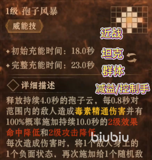 最后,托维尔的技能设定也非常独特。他的战技“嗤笑蘑菇”可以在敌人附近种植蘑菇,使附近的角色进入嘲讽状态。蘑菇枯萎之后还会攻击旁边的英雄并让它们进入致盲状态。这个技能不仅可以吸引敌人的火力,还可以对敌人造成额外的伤害和控制效果。而他的威能技“孢子风暴”则可以持续释放孢子云,攻击被孢子云覆盖的目标,降低他们的专注值和攻击力。这个技能在团战中可以对敌人造成巨大的威胁,打乱他们的节奏。