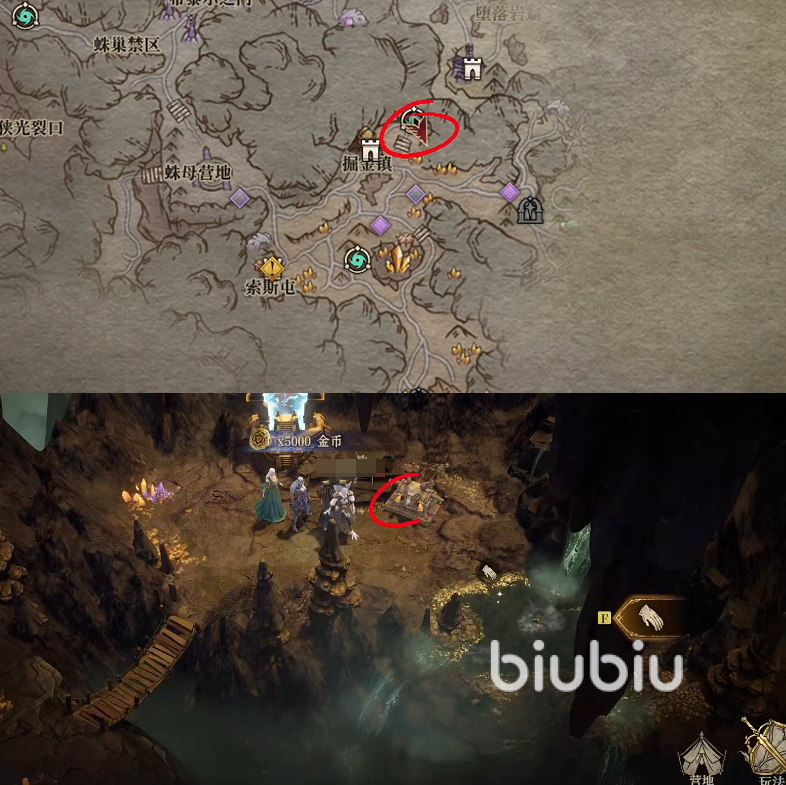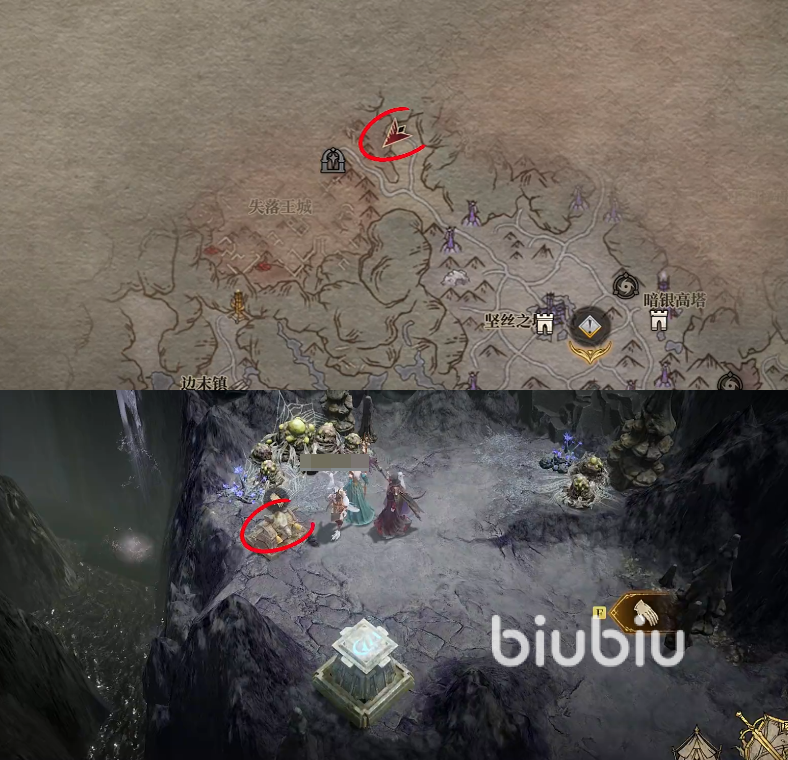 第八个宝藏地点则是位于失落王城的右上角,在靠近悬崖的地方有很多蜘蛛卵的地方就可以看到。