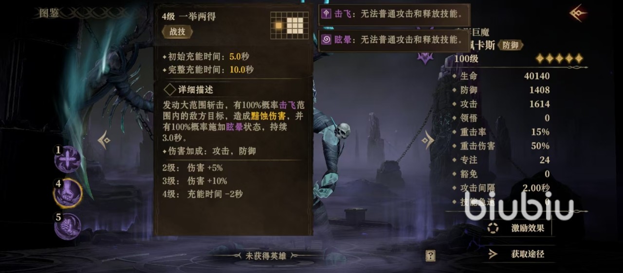 首先来看一下幽影巨魔所具有的被动顺手牵羊,效果是在敌方目标受到治疗时,自身也会受到该治疗量50%的效果,但是存在内置冷却,一定时间内只能生效一次。战技一举两得,发动一次大范围斩击,100%几率将施法范围内的敌方目标击飞,造成黯蚀伤害,还有100%几率施加眩晕状态,持续三秒钟。对方在被击飞之后,是无法普攻和释放技能的,眩晕也是无法释放普攻和释放技能,所以控制效果非常出色。