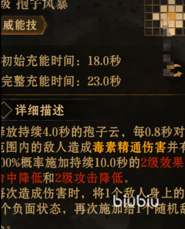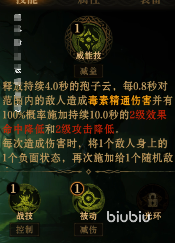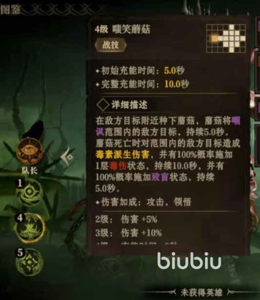 接下来,让我们深入了解核心技能。队长技“专注光环”在大角斗场的战斗中,能够显著提升所有友方单位的专注值,从而强化队伍的总体输出和防御。每当队伍中有其他英雄倒下时,此技能还能为托维尔恢复一定比例的最大生命值。被动技“猎物锁定”则让托维尔在战场上受益于敌方单位的每个减益状态,获得相应的伤害减免,这一效果可以累积,最多可叠加至10次,极大地提升了托维尔的生存能力。战技“嗤笑蘑菇”允许托维尔在敌方单位附近种植蘑菇,这些蘑菇会吸引敌人的注意力,强制他们攻击托维尔,从而保护队友。蘑菇在死亡时会对周围的敌方单位造成毒素派生伤害,并有可能施加毒伤和致盲状态,进一步削弱敌人的战斗力。威能技“孢子风暴”则释放出孢子云,对范围内的敌军造成持续的派生效果,并降低他们的专注值和攻击力。如果敌方单位已经处于毒伤状态,孢子风暴还会额外降低其攻击力。