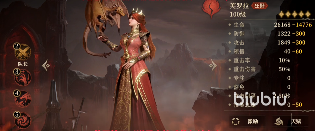 龙妈的生命值和攻击力都很高,血量高达26168,攻击力也有1849,防御能力也有不错的1322,作为输出角色来说,这个属性面板是相当不错了。队长技”攻击光环”,在所有的战斗环境中,都能让己方队友的攻击力提升30%,队长技的主要效果就是提高整体的输出能力。