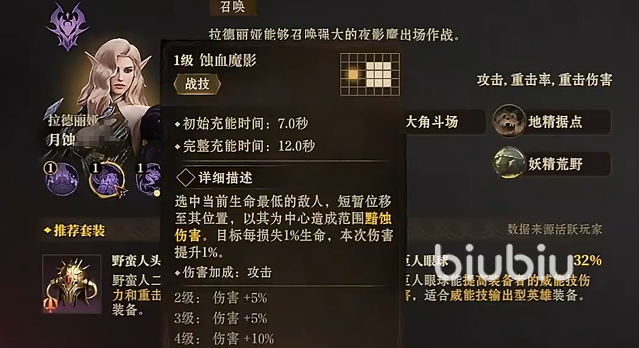 其次,其战技“黯蚀爆发”能够短暂位移至当前生命最低的敌人附近,造成范围黯蚀伤害,目标每损失一定生命,伤害提升一定比例。这一技能使拉德丽娅能够迅速切入敌方后排,秒杀脆皮敌人,并引发连锁反应。释放后,她会返回原位,确保了生存能力。威能技“暗堕盟誓”,在夜影魔不在场时,会释放“蚀”,向指定位置发射夜影魔,对路径上的敌人造成属性伤害,并在目标区域降落造成二次伤害。若夜影魔已出场,则释放“影”,使夜影魔恢复全部生命值,并每秒对周围敌人造成黯蚀伤害,增强了续航和输出能力。