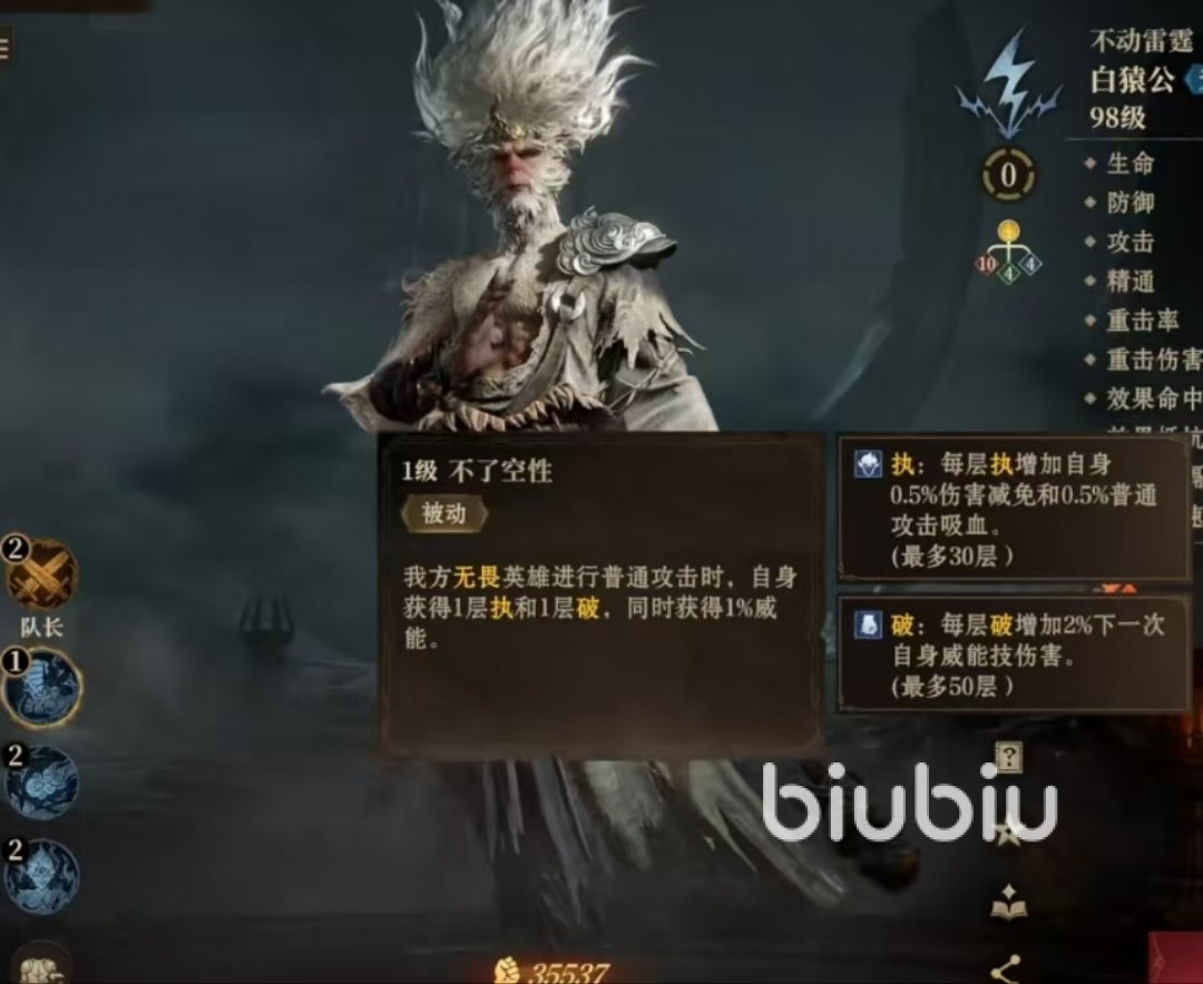 首先他的技能方面拥有了三个技能,第一个技能是被动技能,能够提供伤害减免和音通效果。第二个技能是级血,攻击的时候能够叠加级和破,同时获得威能。而且他的技能能够造成大量的伤害,并且随着破层数的增加而提升。悟空作为一个无畏英雄,特别擅长普通攻击产生连携效果。而且他在战斗当中能够召唤白猿公,同时增加自身威能剂的伤害。而且还附带吸血效果,使他在战斗当中更加持久。