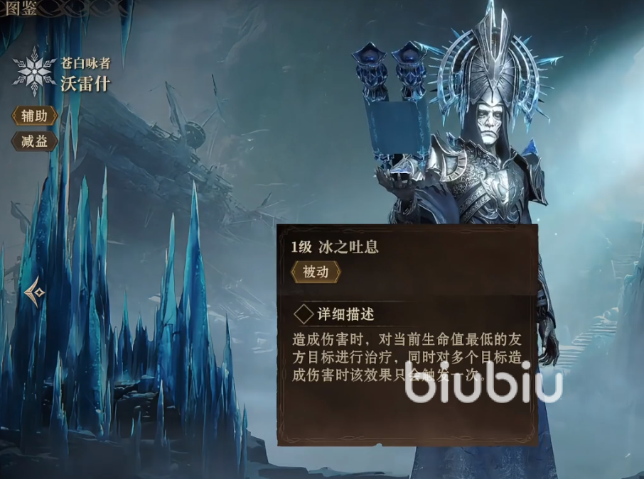 沃雷什:是一个非常好用的史诗辅助。他的被动技能会对生命值最低的友方目标进行治疗,当技能对多个目标造成伤害时,该效果仅触发一次。威能技可以对所有敌方目标造成三次冷冻伤害,并有75%的概率施加增益无效状态。沃雷什对那些依赖增益效果的Boss,如血王子齐诺斯,有非常强的克制作用,在推图时表现出色。