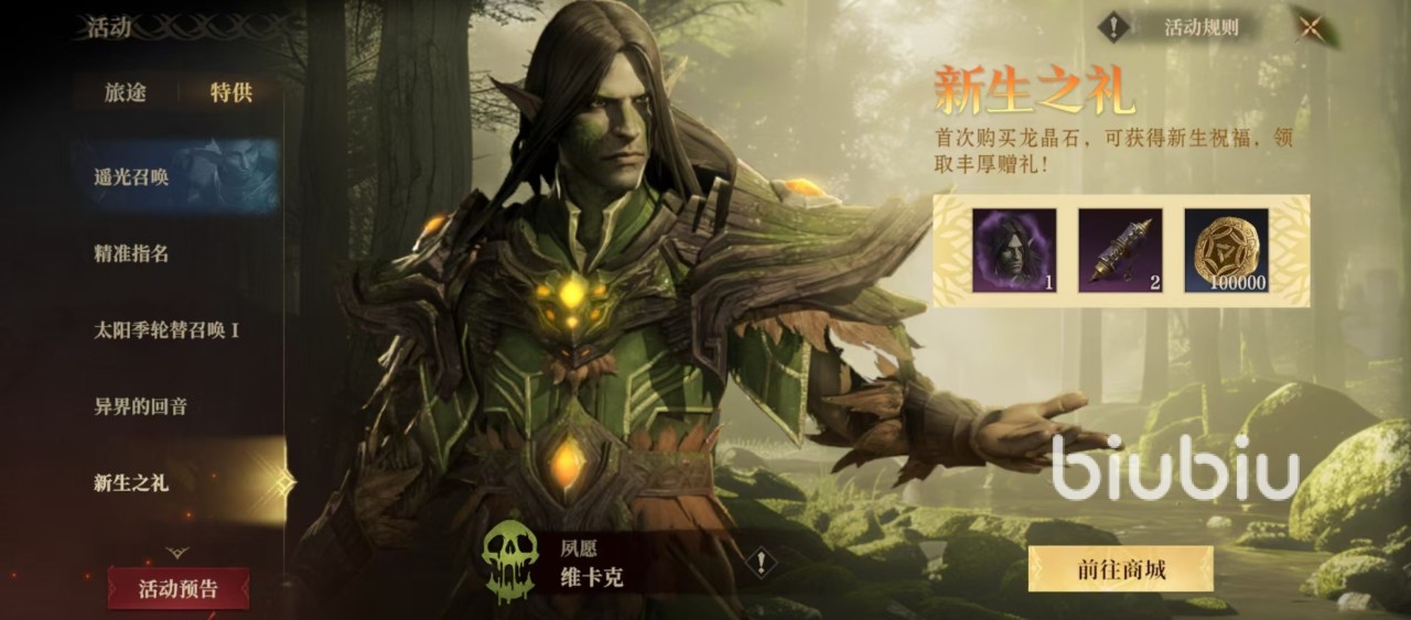 接下来要购买的是游戏内的首充,首充一般性价比都非常高,这已经成为大家的共识,这款游戏中也不例外。另外还有一点要补充,那就是当大家首次购买龙晶石,无论是哪一档次都可以获得新生祝福,直接领取大量金币和赠送紫色角色。所以即使不进行上面所说的每个档次的充值也要将首冲先拿下,这样赠送的福利就已经足够前期使用。
