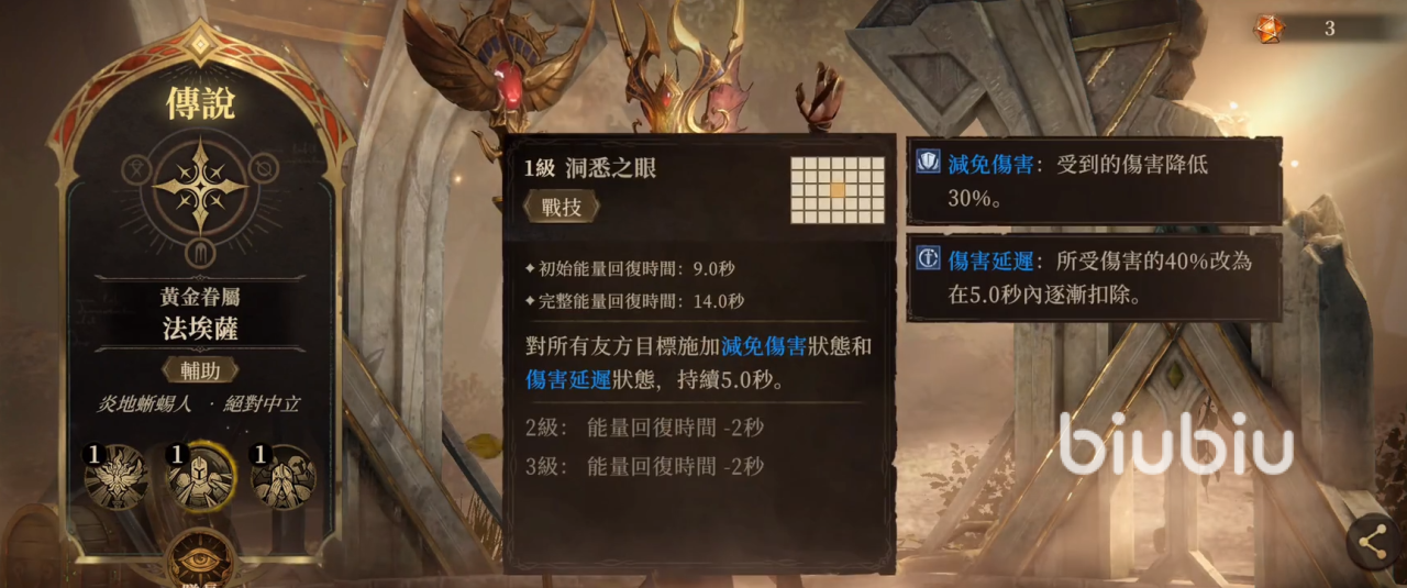 洞悉之眼可以为全队提供短暂的伤害缓冲效果,在面对强敌或者高爆发技能时尤为重要。同时,对于新手来说,法埃萨的战技可以部分替代专属护盾角色,是一个性价比很高的选择。