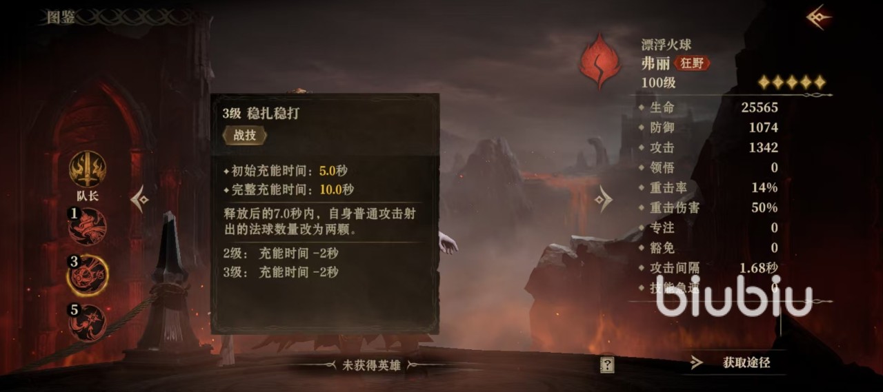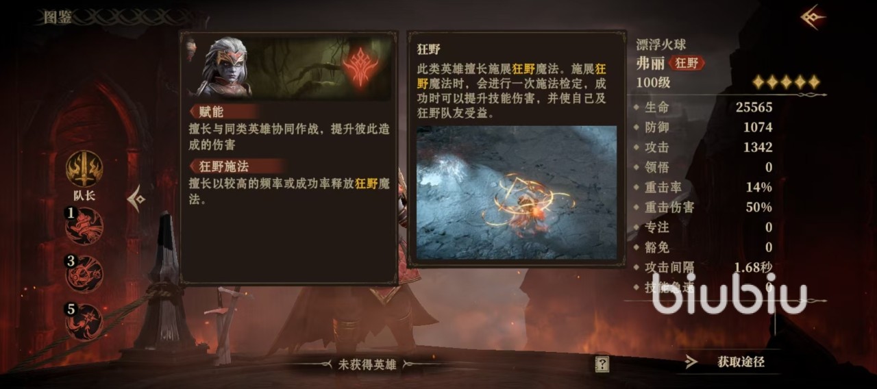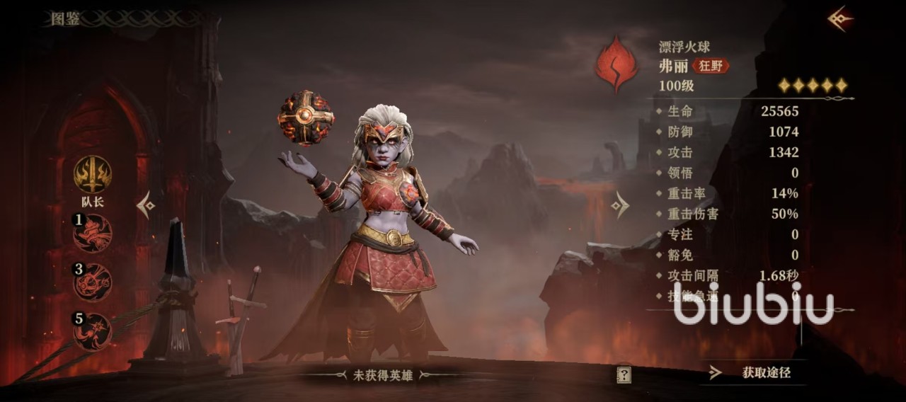 在技能方面,弗丽是具有队长技能的,带来的是重击伤害光环,所有战斗中都能生效,提升24%重击伤害,中规中矩的属性加成,并不十分推荐。被动技能难得好运,如果友方狂野英雄判定成功,那么自身下一次普通攻击伤害提升60%,且被视为狂野。战绩稳扎稳打,释放后的7秒内,自身普通攻击射出的法球数量改为两颗。威能技高风险实验,对敌方目标造成火焰伤害,该技能狂野判定成功时,对另一名随机目标释放此技能,通过该效果最多能连续释放三次。