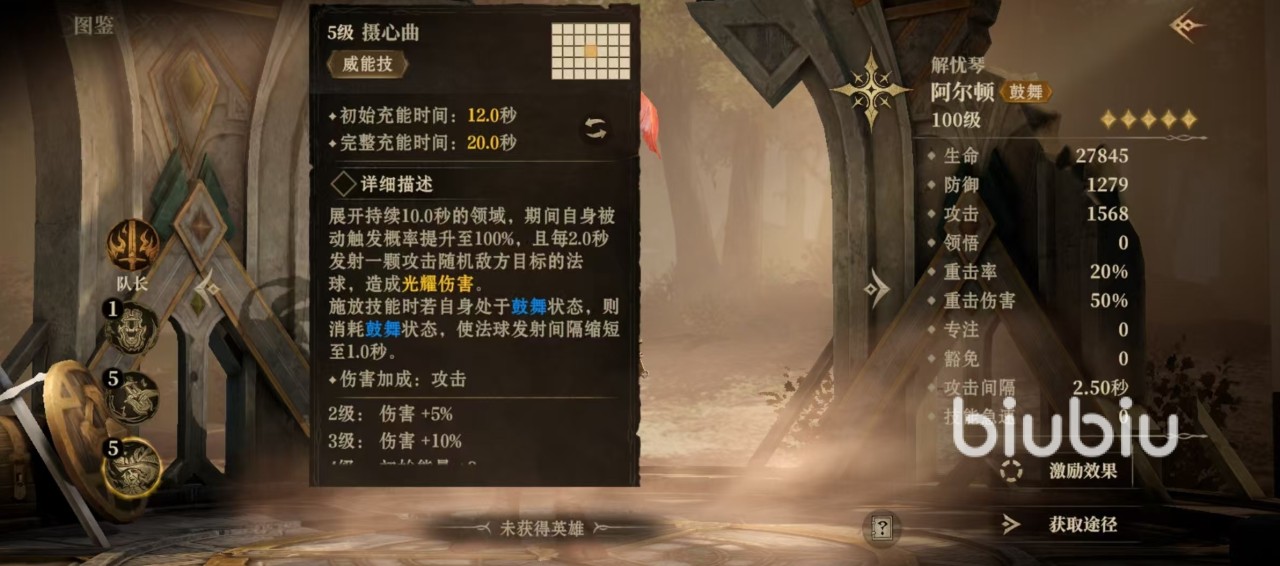 现在就可以看出,阿尔顿最擅长的就是为队友施加鼓舞状态,并且在进行鼓舞施法时施加攻击增益,只要选择合适的队友,几乎可以覆盖全队,带来很好的增益。在配队伍方面其实非常明显,走的就是光系鼓舞队。这些英雄都擅长鼓舞,消耗鼓舞状态强化技能,相互配合下保证了鼓舞的覆盖率,并大幅度提高伤害。