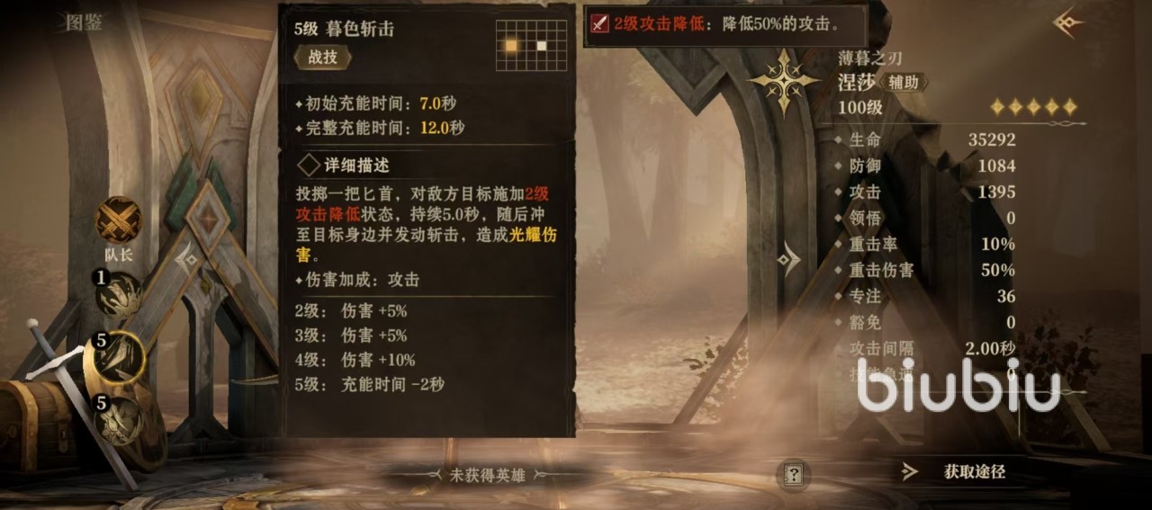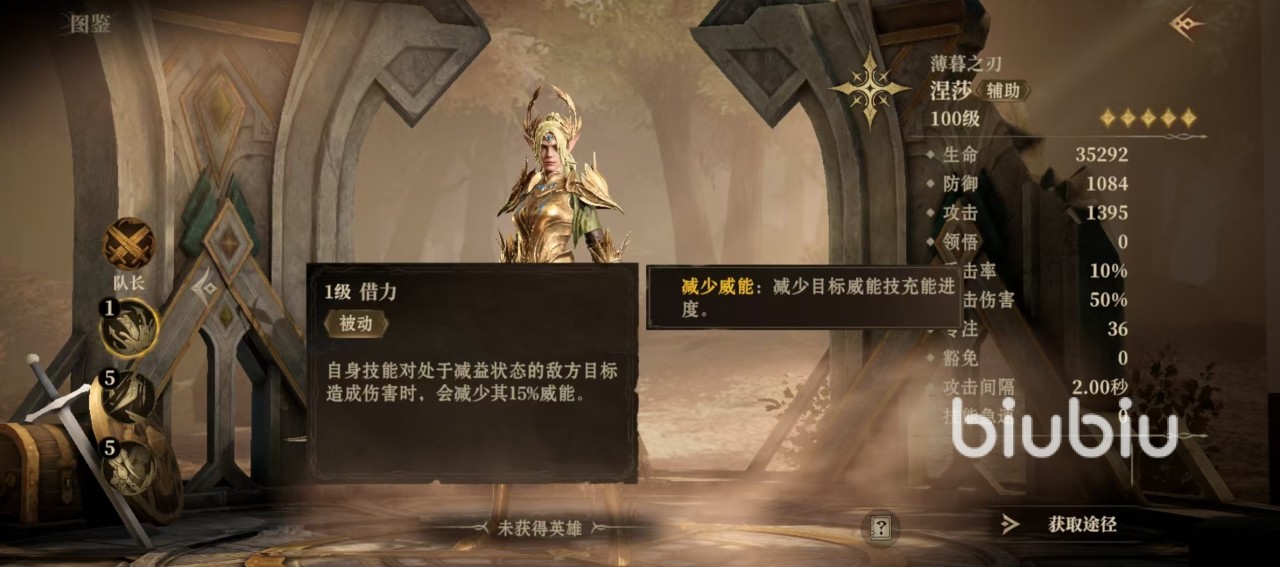 如果涅莎成为队长,那么附加的是攻击光环,在所有的场合下都能提升40%攻击属性,也算是比较常见且通用的光环类型。被动借力,自身技能对于处于减益状态下的敌方目标造成伤害时,会额外减少其15%威能,减少威能之后,目标威能技充能进度就会受到很大影响,这对于一些依靠威能技来打输出或者是效果的目标来说是很好的限制。尤其适合搭配拥有各种减益状态的队友一起组成阵容。