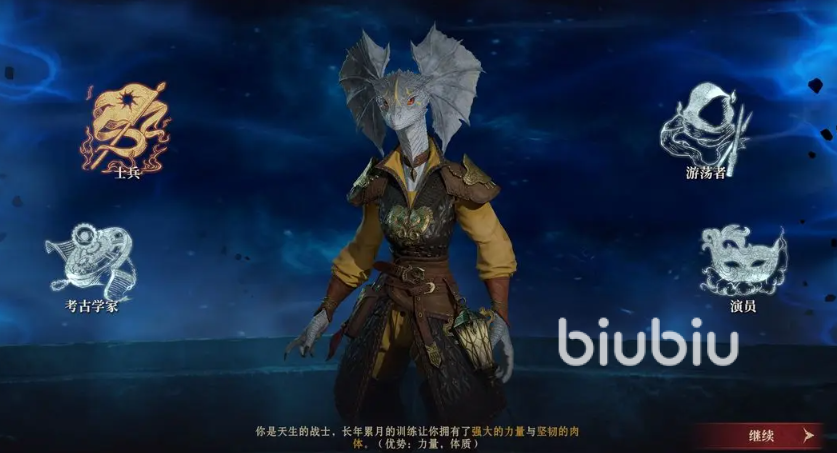 还有身份系统,分为士兵、考古学家、游荡者和演员。不同的身份会带来不同的属性优势,并在进行与身份天赋相关的检定事件时,给结果会增加一定的数额。