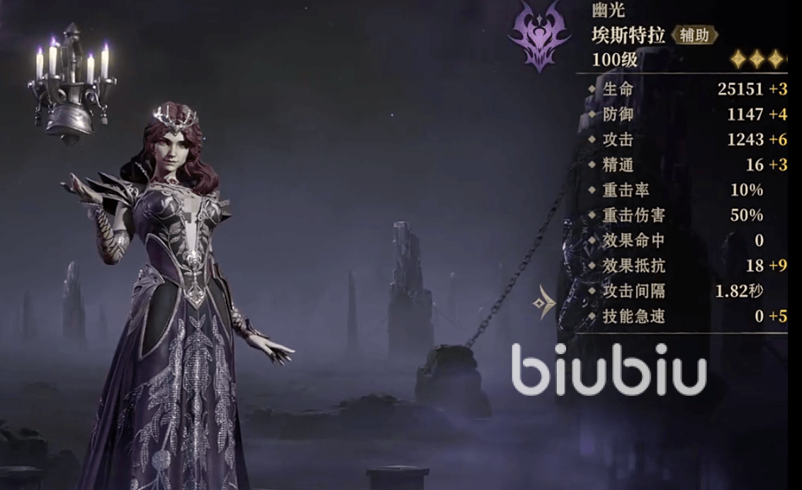 他的被动能在对敌人施加减益时,有30%几率随机移除一位队友身上的1个减益,他的战技能对范围内敌人形成320%攻击的光耀伤害,并且有75%几率降低其25%的攻击和施加致盲,让其普攻无法命中目标,他的威能技会发动3次攻击,每一次都会对范围内敌人形成一定输出值,并且有30%改了施加5秒眩晕。