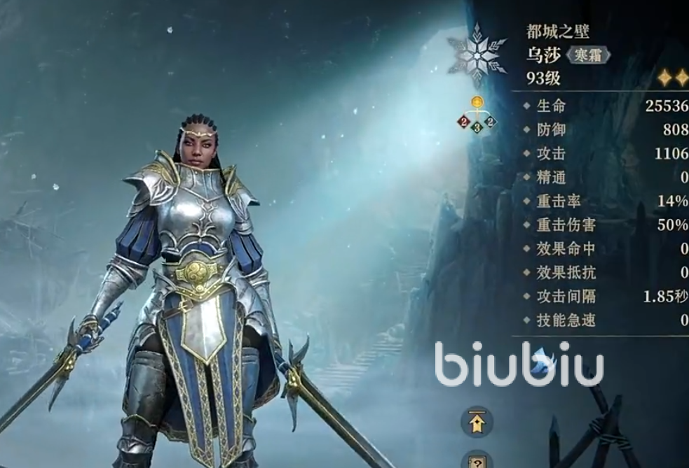 乌莎是冰冻元素的英雄,她的被动能在对处于寒霜状态的敌人进行攻击时,每第2次普攻就会转变成双倍的伤害,她的战技会对自身施加300%攻击的护盾并增加50%的速度,持续时间为10秒。