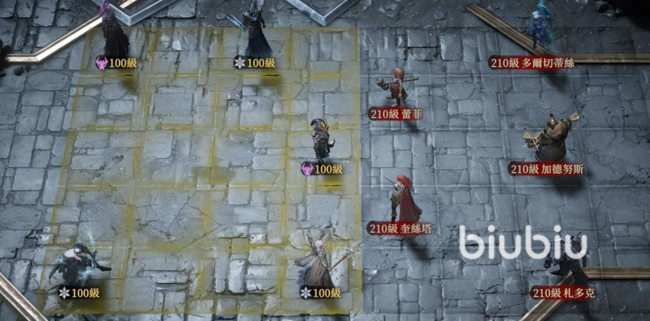 在这里,降攻技能一定要手动释放,等到第一波解除减益后再使用。由于污浊之柱是最早打通的,因此艾利奇的装备无法将重伤叠得很高,理论上来说,重击和重伤效果优先于攻击力。开场时需要手动操作的是降攻、嘲讽和大号角,集中火力去减员一只怪物。当前排三人血量降低到一半时,丹的效果就会显现出来,战斗会变得相对容易。