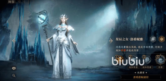 她的被动会让普攻变成能在敌人之间最多弹射2次的冰球,冰球命中敌人会形成100%冷伤,并有75%几率让其中寒霜10秒,她的战技会标记一个己方的单位6秒,被标记的话每过1.5秒就会对自己周围的敌人形成115%冷伤,并100%施加寒霜5秒,她的大招会在一个指定地方召唤出持续6秒的冰龙卷,冰龙卷每过1秒就会对范围内敌人形成136%冷伤。