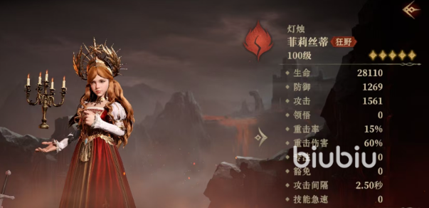 她的被动能在普攻或战技触发重击时增加自己5%的威能,她的战技是发射火球对敌人形成300%火焰伤害,该招式狂野判定成功率增加到50%,且成功后会二次释放,其大招会发射出火焰激光,对敌人形成3次370%火伤,该伤害能直接无视目标护盾。