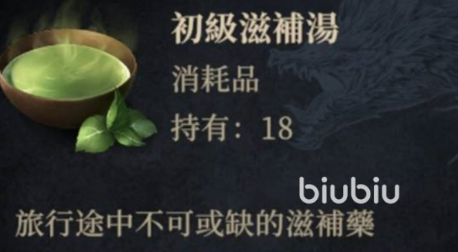这个料理是旅行冒险时候的必备品,能够完全回复队伍中一位英雄的生命值,在资源匮乏的前期,是面对各种战斗的最佳选择,所需配方为一份红叶加上一份再生草。