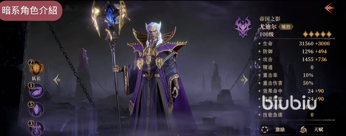 3、暗系。这个系列的话“紫龙·尤迪儿”,他本身是属于boss级别的角色,遇到活动的话会送,但是主要是用来打单体boss的,平时很少用;“托因”这个角色就相对来说好用很多,他开大之后附带队伍一个隐形效果,对方就找不到攻击目标了。