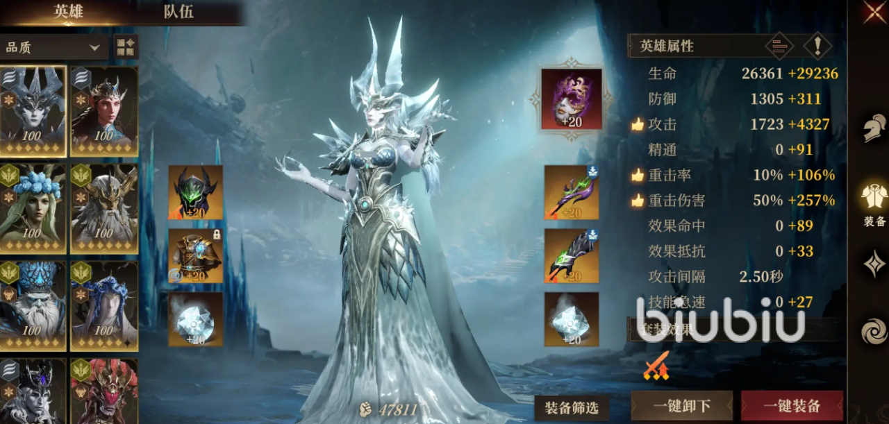 选角方面,冰系队伍的治疗角色相对较弱,所以组建纯冰队伍可能较为困难,建议是3名冰系角色再加2个其他系角色以增强生存能力,比如说经常会选一些暗系队友来搭配。同时,也要避免选择那些会引爆寒冰效果的角色,例如维迪米尔,虽然寒冰引爆能带来瞬间爆发伤害,但会导致寒冰效果消失,影响后续“冷冽寒风”的持续伤害输出。