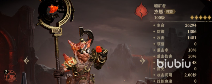 火系角色,擅长范围攻击,但需承担一定的反噬效果。其战技能喷出火焰,对敌方范围造成五次灼烧伤害,同时有概率提升自身攻击,持续5秒,但火焰也会对自身造成伤害。威能技可大范围焚烧敌人,并减少其威能25点,同时有高概率移除所有增益状态。被动能力降低自身所受火焰伤害,并在受到火焰元素攻击时,有概率为自己及周围友方提供额外的防御增益与威能恢复,相较于治疗,杰恩更多是提供输出方面的增益。