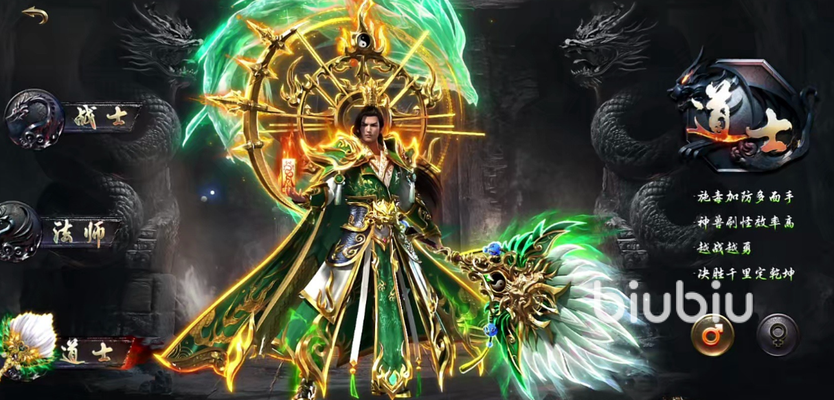 道士职业是一个比较适合平民玩家的职业,该职业的优势就是全能,适配各种团队阵容。他具备了很多的 buff 能力,可以为团队提供更多的输出空间和生存保障;同时还可以召唤不同的生物进行协助攻击,这些召唤物既能吸引敌人火力,又能补充伤害。