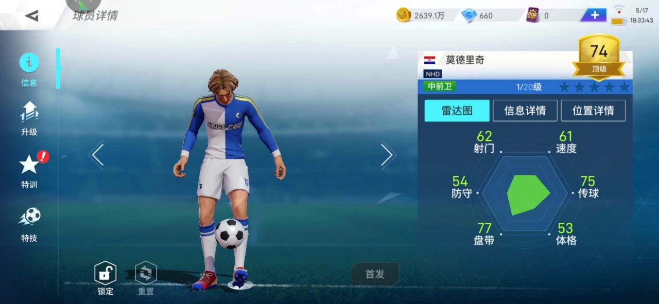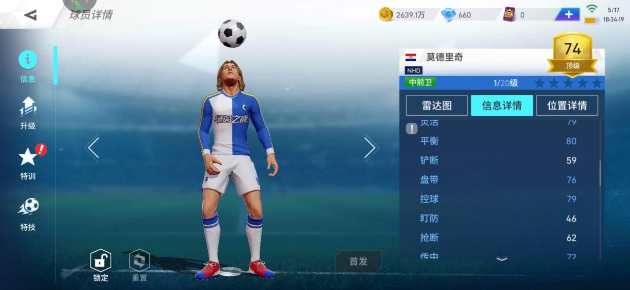 从信息详情来看,魔笛的盯防及铲断能力稍差,其他组织进攻和得分能力都不错。平衡、盘带、控球等都比较突出,可以做为一个进攻的组织者来使用。