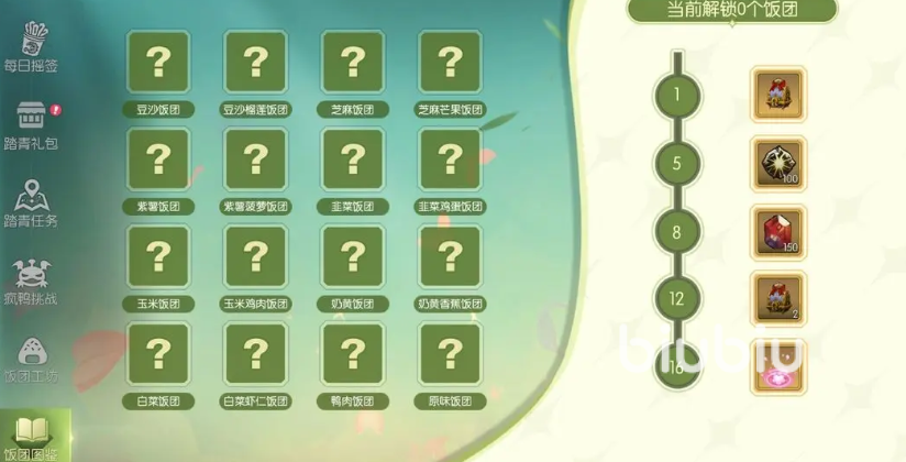 饭团总共有16种,每成功解锁出一种新的,就能获得图鉴奖励,解锁达到了指定数量,还能获取额外资源,大家可以尽情尝试不同配方,拿到隐藏饭团,解锁全部的图鉴。