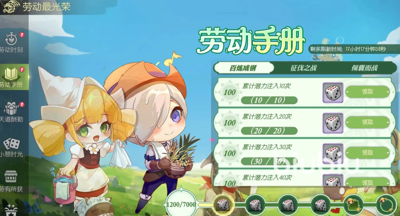 在活动期间,还准备了劳动手册任务,这些任务都很简单,就是通过日常副本、挑战等,顺利完成能得到大富翁骰子,赢取海量奖励,并且在完成任务的过程中大家还会消耗一定的疲劳值,这个疲劳值最高可累计消耗到8000,大家可以全勤,或者利用好金币兑换疲劳值的功能来进行获取更多奖励。