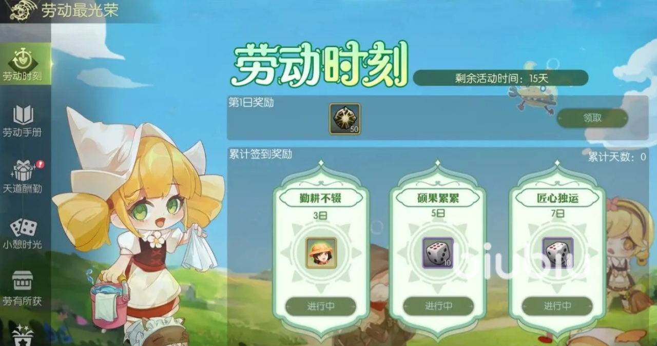 在这个五一活动期间,大家只要每日登录就能前往签到页面,获取到强化石、金币等超多养成资源,累积登录7天能领取到限定头像和20骰子奖励,连续登录14天的时候还有24000的金币等待领取,各位冒险家一定要记得每天上线。