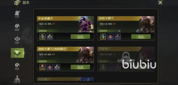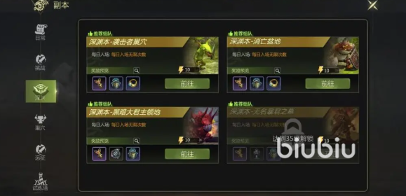 首先日常每天建议大家挑战深渊和细缝这两个副本,玩家们可以发起单人或组队申请进入挑战,这两个副本分别会产出地狱犬的门票、金币和一些材料,不管是为了提升自己的实力,还是拿到奖励,都非常推荐大家前去挑战。