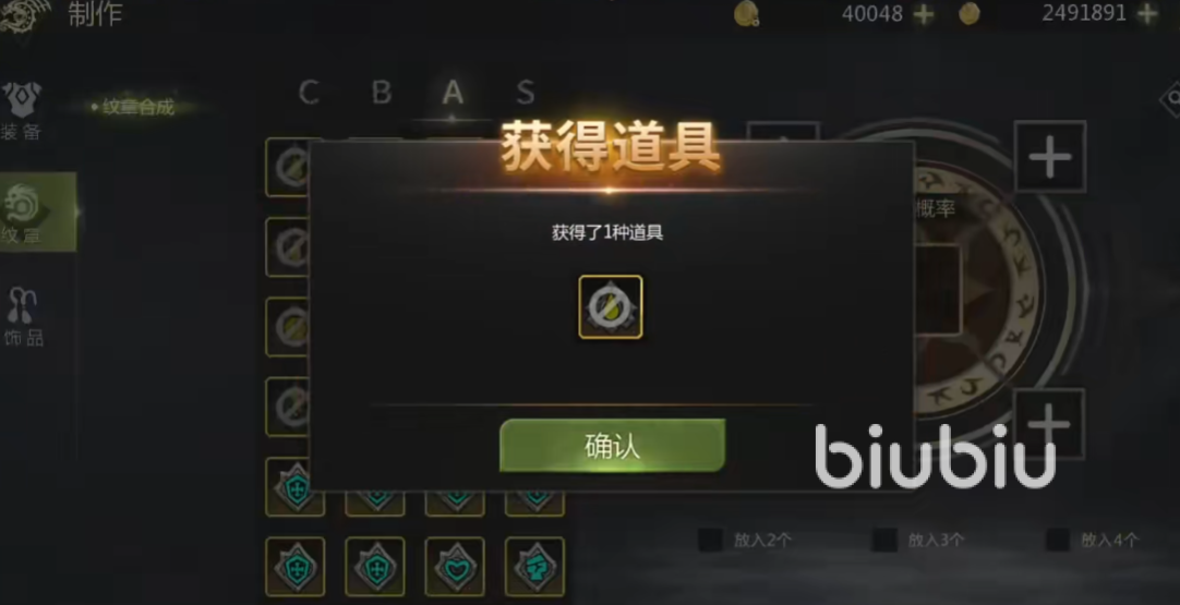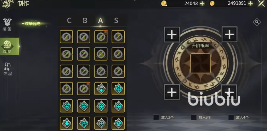 在合成的过程中,我们一共最多可放入4个同品阶的纹章。对于品阶越低的纹章,他所能合成成功的概率就会越高。如果我们想要合成s级的纹章,就至少要放入两个A级的,不够成功的概率只有2%,如果4个的话概率会上升。另外合成之后即便失败也会获得一个全新的纹章,这时你可以洗出一些你所需要的词条或者属性。