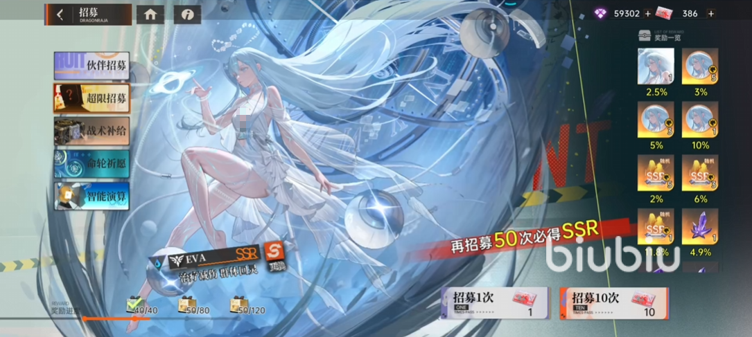而且这个超限招募也是有保底机制设置的,保底不是很多,50抽就能保底,在抽取次数分别达到40/80/120次的时候,就能额外获取对应数量的超限觉醒石,这也是非常稀有的奖励,如果当期的角色不想抽,就可以将道具留到下个角色进入时,在考虑是否下池子。