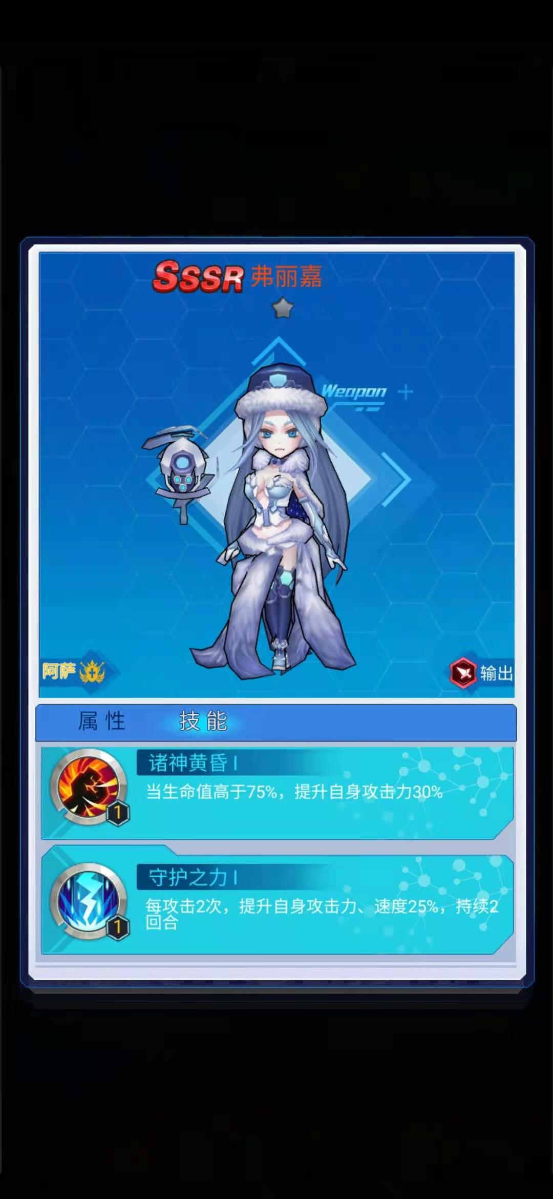 弗丽嘉这个英雄同样属于SSSR英雄,在输出能力上是数一数二的。一级能可以对敌人前排造成很大的伤害,并且还有附加伤害,打前排能力十分强悍。而且她还能愈战愈勇,每次攻击都可提升自身攻速与攻击力。生命值高时同样能提升输出能力,可以不断地伤害敌人。