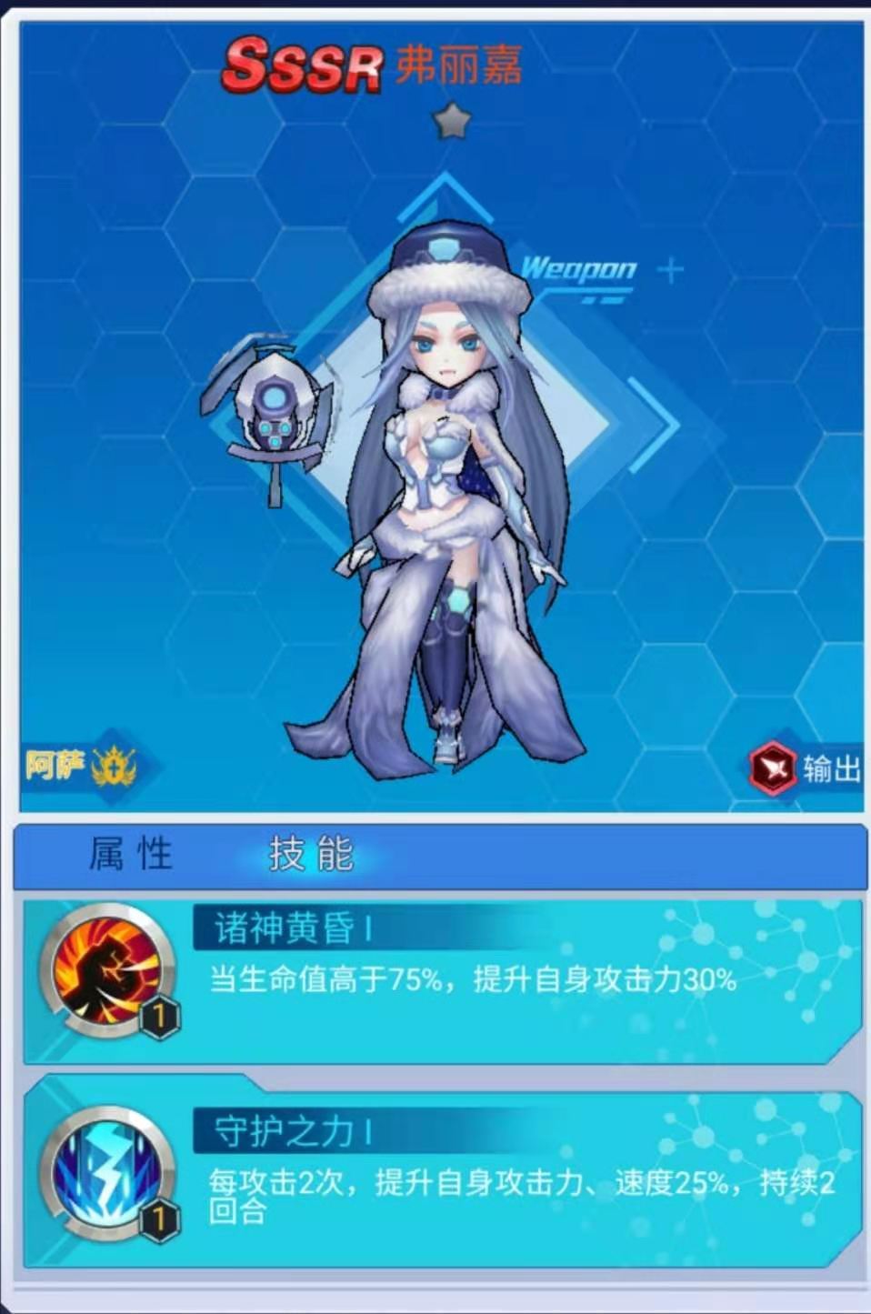 除了龙神外,队伍还需要多加个输出,才能快速完成任务。我们还可以多上阵一个弗丽嘉,这个角色输出同样高得离谱。可以造成持续伤害,还能增加自身属性,非常給力。