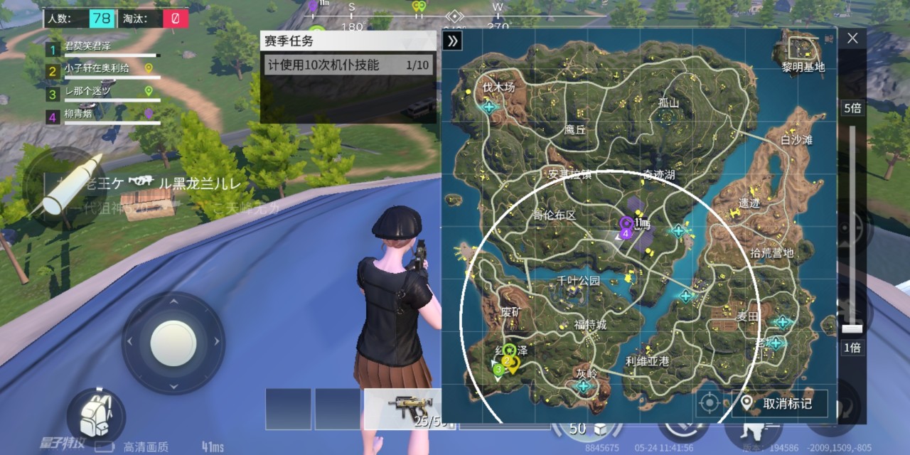 点击右上角小地图可放大,随后使用双指拖拽或拉动右侧的放大条可以放大地图任何一个位置,方便玩家精确选择降落点。而地图上所标志的长箭头代表飞机的飞行路线,建议提前标好降落点,则很难降落到安全位置哦!