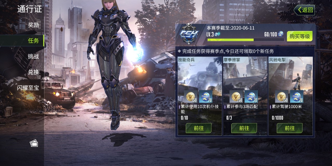 每周赛季挑战任务的奖励内容为赛季勋章和钛金,赛季勋章虽然与通行证等级无关,却是兑换赛季专属奖励和闪耀至宝的专属道具。完成所有挑战任务可额外获得赛季勋章和赛季任务卡,后者可帮助玩家完成那些棘手的挑战任务。