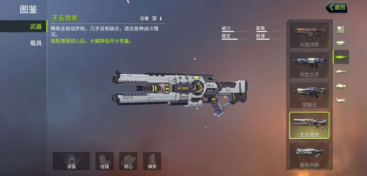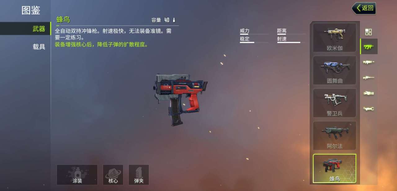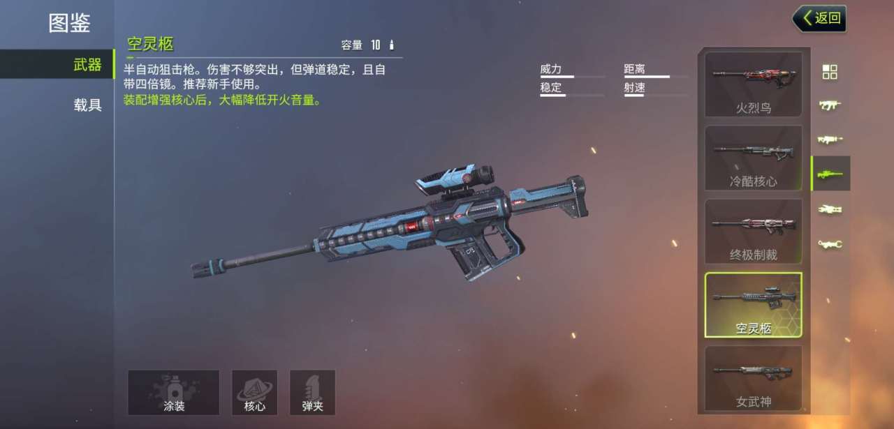 玩家在进行游戏之前首先要了解不同枪械的特点,才能灵活在战斗中应用。游戏主界面的右上角最左边的4个方形图标点击进入,找到图鉴就可以进入所有枪械的基本属性信息了。