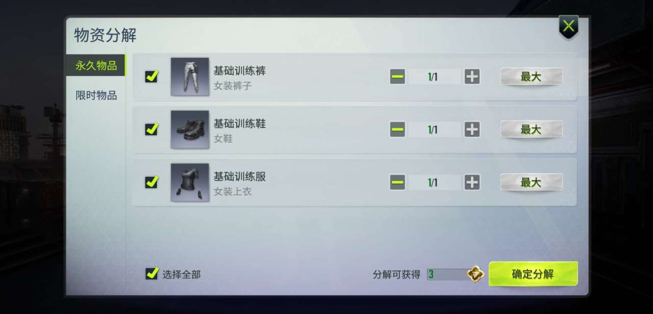 在游戏主界面中点击外观一栏,进去之后就是玩家的一些服装、武器、装备、喷漆等设置栏。进入到服装界面中在右下角有一个循环的标志,玩家进入之后就会看到服装分解的各项选择。