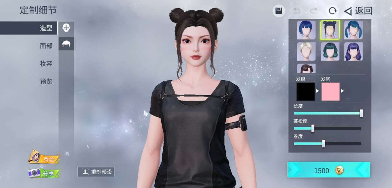在量子特攻中人物外貌的基本设置称之为定制细节,这个界面中包含了游戏人物外貌的各种设置。第一栏的造型就是修改发型的最终入口了,游戏系统会给到玩家7个固定的发型模板去设定,玩家可以在这些模板的基础上根据自己的喜好修改发根和发尾的颜色、头发的长度、蓬松度、卷度等。
