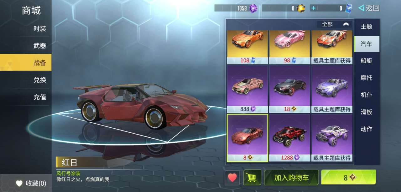 蝶形币可以兑换服装、武器涂装,自然也少不了战备类的汽车,汽车在作战时也是一个很有力的武器呢。玩家可以使用8个蝶形币兑换风行号红日系列涂装,这是一款比较低调的暗红色系涂装。另外玩家还可以使用18个蝶形币兑换飚客敞篷车的黑鲨涂装,这款汽车涂装就是比较炫酷的黑色系涂装,玩家可以根据自己蝶形币的储备量自行选择喜欢的汽车涂装。