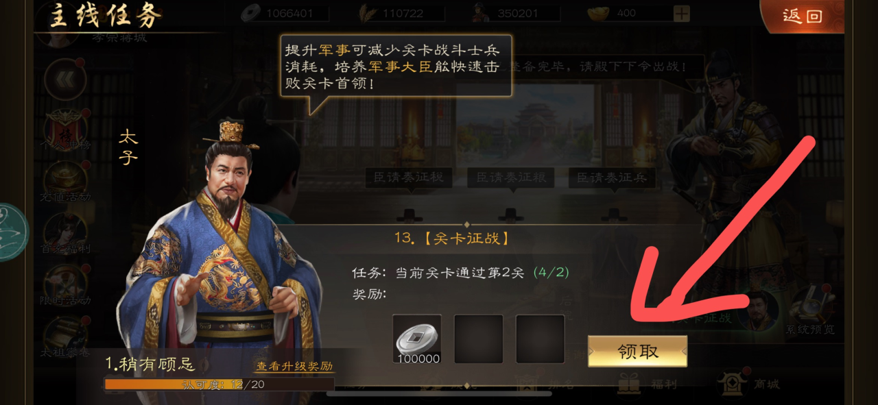 第八步:完成主线关卡任务也可以快速获得大量的银两。