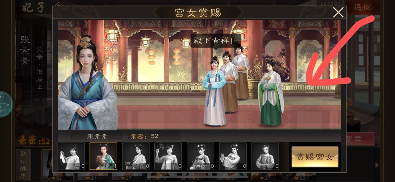 第十步:然后赏赐宫女给该母妃提高亲密度。