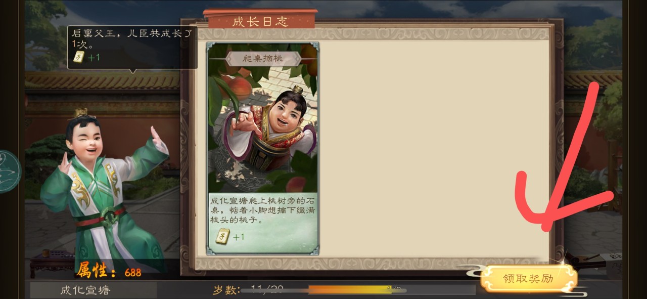第五步:每一次培养之后就会属性提高,年纪也会提高,可以领取一定的奖励,还有一定的几率触发一些特定事件。