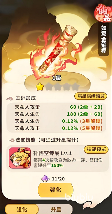 总体来说,法宝的品质和种类都是随机获取到的,升星也只能随缘,所以这一方面要保持平常心。但是升级法保持不能随缘,需要合理进行法宝的升级规划,避免因为操作不当而损失战斗力,尤其是在高等级的时候尤为重要。毕竟材料是不能回退的,所以做好准备之后再下手。