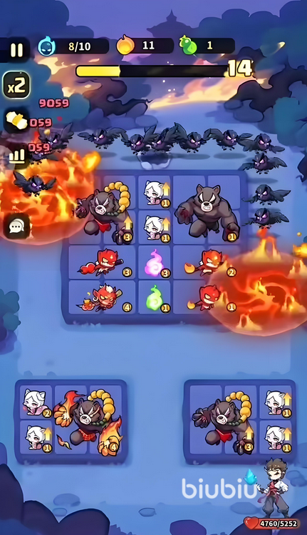 在实战中,珞珈尊者作为绝品火系的输出主力,前期只要局内可以上阵三个珞珈尊者,再将技能强化全部点满,就可以做到地上全部都是火圈灼烧,甚至可以直接将小怪堵在门口。再配合上其他的雷系或者是物理系,配合输出以及控制,完全能够满足绝大多数推图的需要。因为珞珈尊者本身没有控制,所以适当对怪物减速也是很有必要的。
