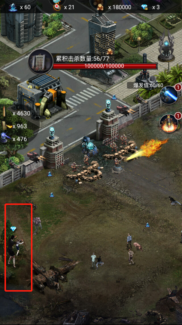 防御丧尸。在城楼门口防御丧尸,有一部分丧尸只要你把它消灭了就能得到钻石,一波防御下来大概能得到10个钻石左右。