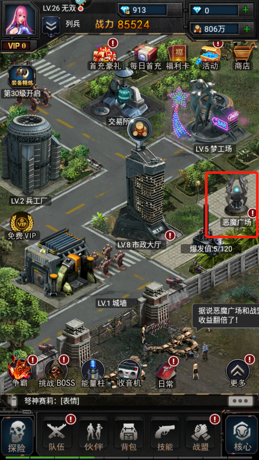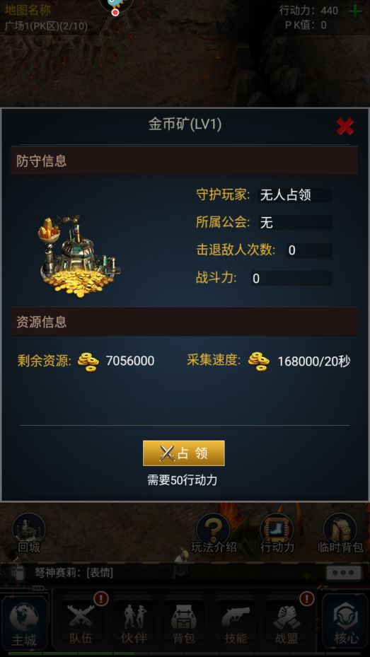 咱们继续来说说恶魔广场的玩法,在这里我们可以“采矿”,每20秒能够获得168000的金币!瞬间让你成富豪。还可以占领魔魂转换器,每20秒能获得20个魔魂,魔魂是可以去兑换伙伴信物。