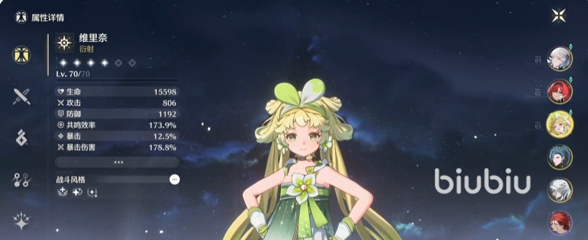 维里奈也是不错的可以去练的一个共鸣者,这是一个常驻的五星,虽然是一个辅助角色,但是获取来说是比较简单的,而且养成的难度比较低,主要就是堆叠她的生命值,最重要的是她能够给队友提供强大的治疗效果,而且对于整队的伤害还可以得到提升,辅助能力很强势,队伍中有这样一个角色,整体生存和输出都提升不少。
