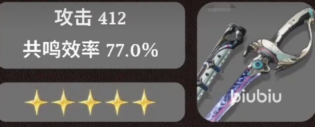 因此20暴击加成的迅剑给到他增益效果不大,而专武的属性给到他提升就很大了,他的专武拥有攻击和共鸣效率加成,其中共鸣效率加成拉满的情况下有70多,这70多的共鸣效率可以让其快速打满协奏进行切人。