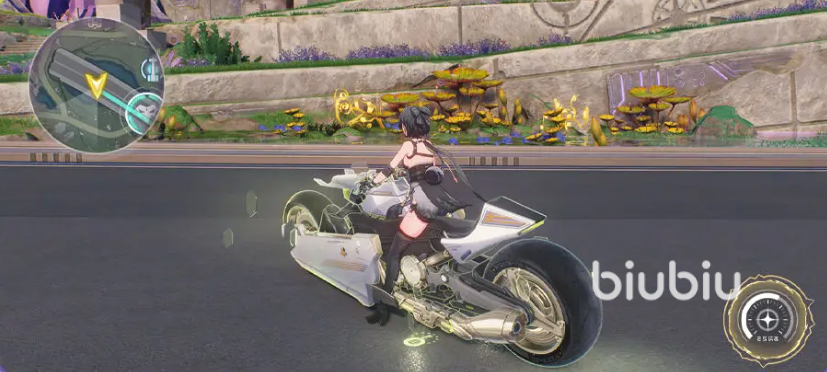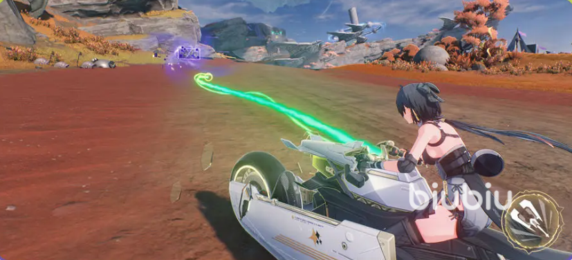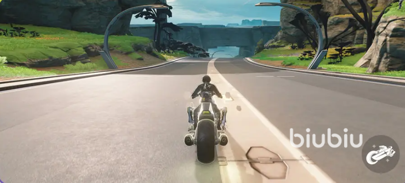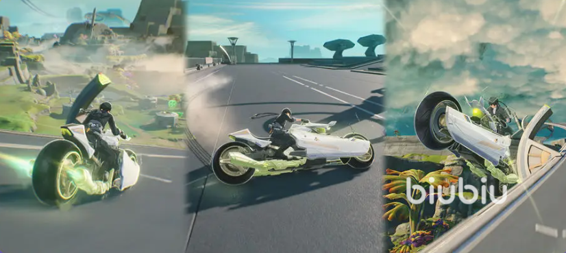 骑着这个工具时,加速、动能爆发、漂移、海豚跳都是可进行的操作,摩托车在骑行时会有防御力场加持,防力场被击破受到伤害、控制效果,此时退出载具状态;该载具设定有万向锚钩锁模块,万向锚可钩取远处采集物、声匣,或其他物件。