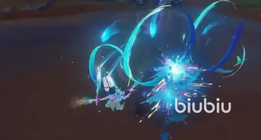 常态普攻组多3段,处理特殊的“光学取样”阶段时,并且溢彩已满就可以按住普攻进入蓄力,蓄力期间溢彩转化为流光,并且蓄力期间可以免疫打断并且有50%减伤,是稍有的0链就有抗打断的角色。而处于“绮彩巡游”状态普攻则变化形态,最多有5段。